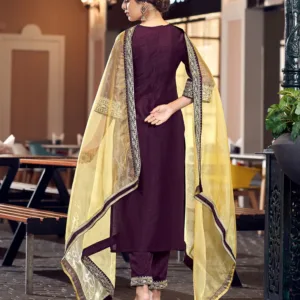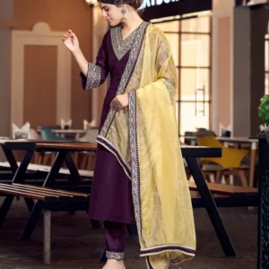 Be the first to review “Wine Plain Silk Straight Kurta With Pant And Dupatta”